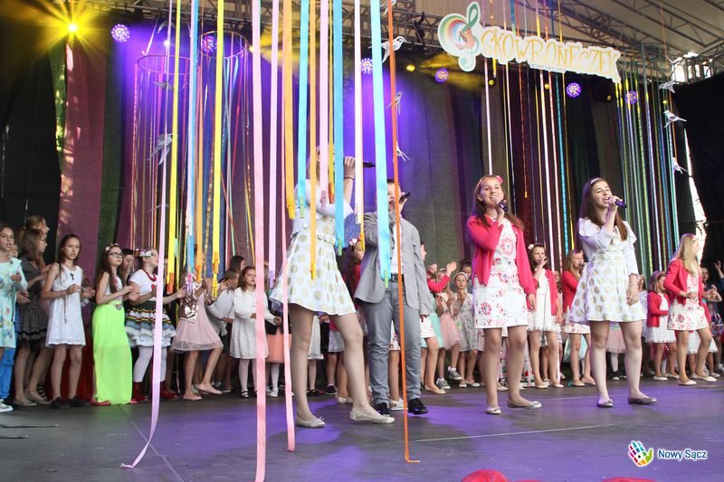 To był wieczór dzieci na sądeckim Rynku! Wszystko za sprawą finałowego koncertu Ogólnopolskiego Festiwali Piosenki Dziecięcej "Skowroneczek", który zainaugurował oficjalne obchody Imienin Miasta, wpisujących się także w 725. rocznicę lokacji Nowego Sącza. Nagrody laureatom festiwalu wręczał zastępca prezydenta Jerzy Gwiżdż w towarzystwie Anety Woźniak, wiceszefowej TVP ABC, Jerzego Petersburskiego Juniora, pianisty, kompozytora i gospodarza programu Petersburski Music Show, a także Milenii Małeckiej-Rogal, dyrektora Pałacu Młodzieży i ks. Andrzeja Mulki, dyrektora Wydawnictwa "Promyczek Dobra". Całe wydarzenie było rejestrowane przez telewizję TVP ABC.