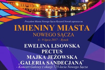 W niedzielę (9 lipca) na sądeckim Rynku o godz. 18:45 odbędzie się koncert Majki Jeżowskiej, a głównym wydarzeniem wieczoru (godz. 20:00) będzie spektakl historyczny Romana Kołakowskiego pt. "Galeria Sandecjana", odwołujący się do współczesności miasta i jego mieszkańców.. Całość zakończy widowiskowy pokaz sztucznych ogni!