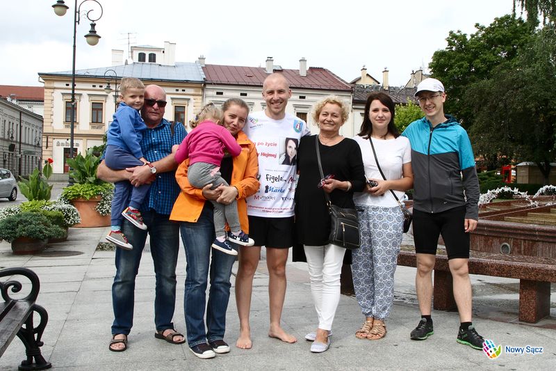 Biegowy ambasador Nowego Sącza Karol Trojan tuż po godzinie 10:00 wyruszył spod sądeckiego ratusza na trasę wyjątkowego biegu. Dlatego wydarzenie jest tak wyjątkowe? Bo po pierwsze akcja wspiera w ten sposób chorą Anetę Hejmej, która czeka na operację ratującą jej życie. Po drugie Karol Trojan włącza się w 725. rocznicę lokacji Nowego Sącza i dlatego biegnie wzdłuż granic administracyjnych miasta, w sumie około 55 km. Po trzecie główny bohater biegu pokonuje całą trasę boso, a dla bezpieczeństwa towarzyszy mu jego brat Irek.