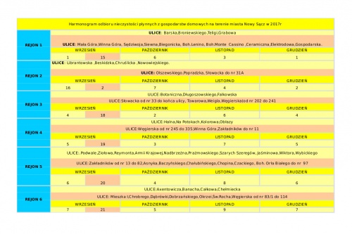 - W czasie obowiązywania uchwały Rady Miasta Nowego Sącza w sprawie przejęcia obowiązków wynikających z art. 6a ustawy z dnia 13 września 1996 r. o utrzymaniu czystości i porządku w gminach (tekst jedn. Dz. U. z 2016 r., poz. 250 ze zm.) podmiotowi odbierającemu nieczystości ciekłe zapewnia się, w terminie wskazanym w harmonogramie, swobodny dostęp do zbiorników z nieczystościami ciekłymi, umożliwiając ich opróżnienie bez narażenia na szkodę ludzi, budynków bądź pojazdów.