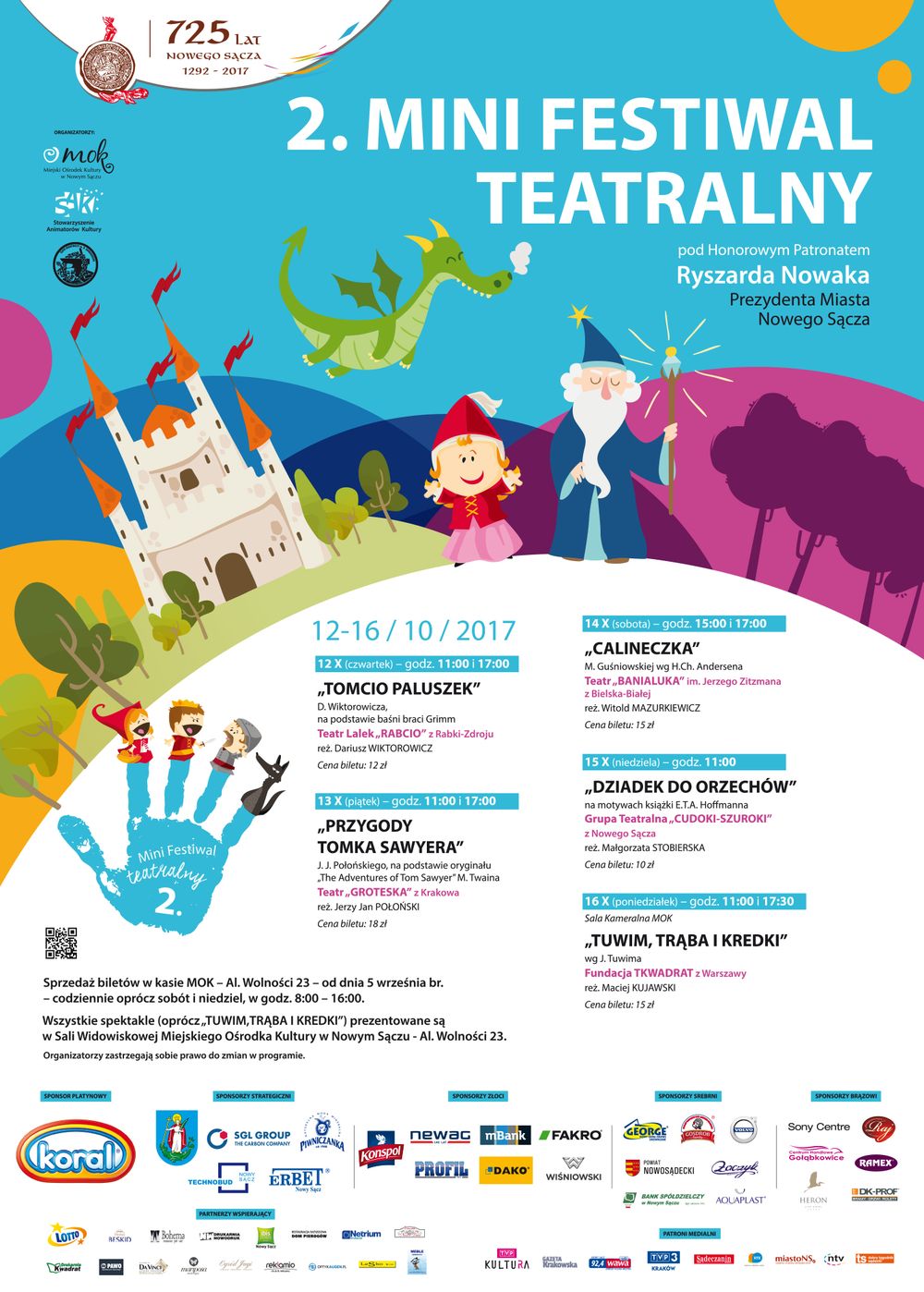 W zbiorczym materiale trudno zawrzeć wszystkie szczegóły. O każdym z festiwalowych dni i poszczególnych wydarzeniach pisać będziemy szczegółowo na stronie festiwalu www.jft.nowysacz.pl. Przedsprzedaż biletów rusza już 5 września w kasie MOK. Bezpłatne wejściówki na Rozmowy kameralne można otrzymać od tego samego dnia w sekretariacie (liczba miejsc ograniczona!).