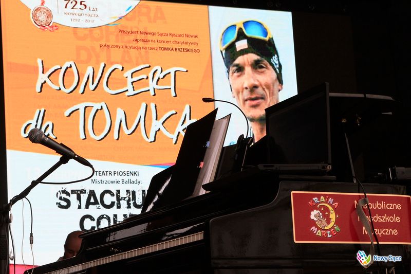 - To koncert nie tylko dla Tomka, to koncert dla nas wszystkich, żebyśmy pamiętali o sobie nawzajem. Czasem tak jest, że kiedy spadamy ze szczytów potrzebujemy pomocy innych - tymi słowami charytatywny Koncert dla Tomka rozpoczął Roman Kołakowski, twórca Teatru Piosenki, którego artyści przygotowali na sądeckim Rynku koncert pn. "Mistrzowie Ballady: Stachura, Cohen, Dylan". W przerwach odbywały się licytacje obrazów znanych artystów, autorstwa MGR MORSA, które powstały podczas niedawnego koncertu z okazji Imienin Miasta "Galeria Sandecjana". W ten sposób udało się uzyskać aż 10 400 zł! Dodatkowo trwała akcja sprzedaży cegiełek, z której całkowity dochód zostanie przekazany na leczenie i rehabilitację Tomka Brzeskiego. Wydarzenie poprowadziła Małgorzata Grybel, kierownik Kancelarii Urzędu Miasta Nowego Sącza.