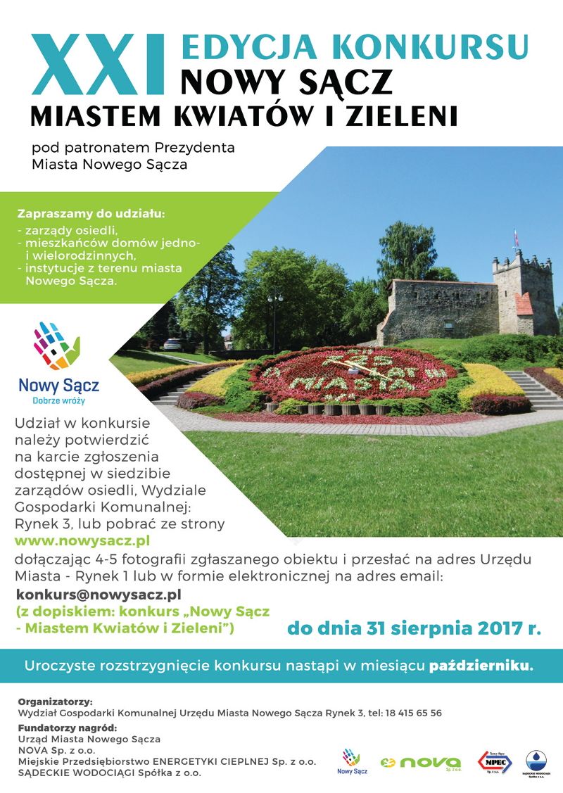 Jeszcze tylko do końca sierpnia można zgłosić udział w XXI edycji konkursu "Nowy Sącz - Miastem Kwiatów i Zieleni". Ukwieconych balkonów, ogrodów i tarasów pełnych kwiatów w naszym mieście przecież nie brakuje. Konkurs objął swoim patronatem prezydent Nowego Sącza Ryszard Nowak.