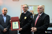 Przemysław Gawłowski wręczył na ręce komendanta Straży Miejskiej Dariusz Górskiego pamiątkowy grawerton od przewodniczącej Bożeny Jawor i Rady Miasta Nowego Sącza. Dziękując za życzenia i gratulacje komendant Górski przypomniał, że Straż Miejska w Nowym Sączu utworzona została w czerwcu 1990 roku jako jedna z pierwszych w Polsce. Zostało to docenione, bo pierwszy zjazd komendantów straży miejskich z całego kraju odbył się właśnie w naszym mieście.