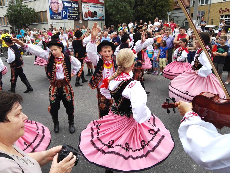 Jak zwykle ogromne zainteresowanie widzów wzbudził barwny korowód winiarzy na przybranych fantazyjnie bryczkach, czy przyczepach ciągnionych przez traktory. Właściciele winnic nie szczędzili poczęstunku młodym winem. Parada jest także okazją do zaprezentowania się grup sportowych, rekonstrukcyjnych i twórczych nie tylko z samego Kiskunhalas, ale również okolicznych miejscowości. Serdecznie przyjęto, tak w korowodzie, jak i później na scenie podczas występów, „Sądeczoków” z Pałacu Młodzieży.