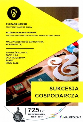 Organizatorzy konferencji Bożena Malaga-Wrona prezes Stowarzyszenia Vesna i Ryszard Nowak Prezydent Nowego Sącza zapraszają lokalnych przedsiębiorców i otoczenie biznesu do aktywnego udziału i dyskusji z ekspertami, którzy będą służyć swoją wiedzą, doświadczeniem i darmową radą. Konferencję otworzy zastępca prezydenta Jerzy Gwiżdż, który wprowadzi do dyskusji nad nowymi rozwiązaniami wspierającymi rozwój przedsiębiorczości podejmowanymi przez samorząd, o których mówić też będzie Alina Marek dyrektor Wydziału Przedsiębiorczości i Funduszy Zewnętrznych Urzędu Miasta Nowego Sącza. Zagadnienia związane z sukcesją gospodarczą oraz zagrożeniami i wyzwaniami, które stoją przed przedsiębiorcami prowadzącymi jednoosobową działalność gospodarczą przedstawi Magdalena Wojdała, prawniczka specjalizująca się w sukcesji majątkowej, wykładowca KUL i ekspert Radia Kraków. Gdzie szukać i jak skutecznie sięgać po środki finansowe na rozwój przedsiębiorstwa wyjaśni Michał Golemo ekspert w pozyskiwaniu funduszy zewnętrznych, w tym funduszy unijnych, natomiast jak budować wartość firmy na pokolenia z wykorzystaniem najnowszych trendów w komunikacji internetowej opowie Michał Krzak ekspert ds. content marketingu.