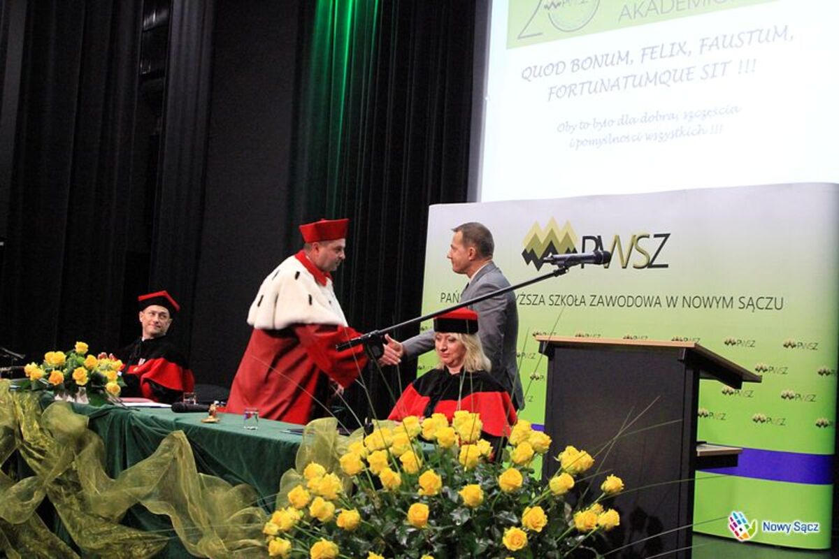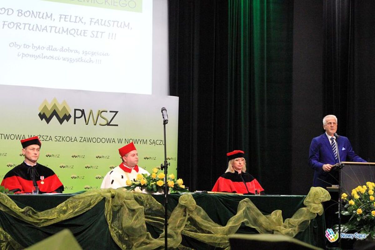 Uroczystość rozpoczęła się pasowaniem na studenta I roku kilkunastu młodych ludzi, którzy najlepiej przeszli przez sito rekrutacji. Wręczono także nagrody dla najlepszych nauczycieli akademickich i studentów w minionym roku, a także nagrodę dla najlepszego sportowca PWSZ. Otrzymała ją Gabriela Mizera, bramkarka żeńskiej drużyny hokejowej KTH Krynica.