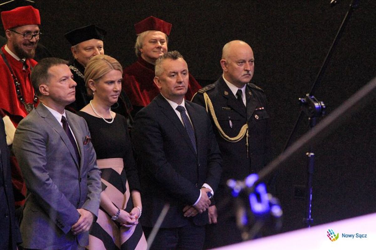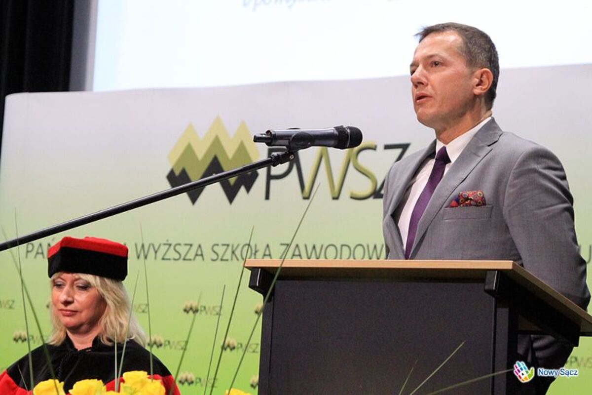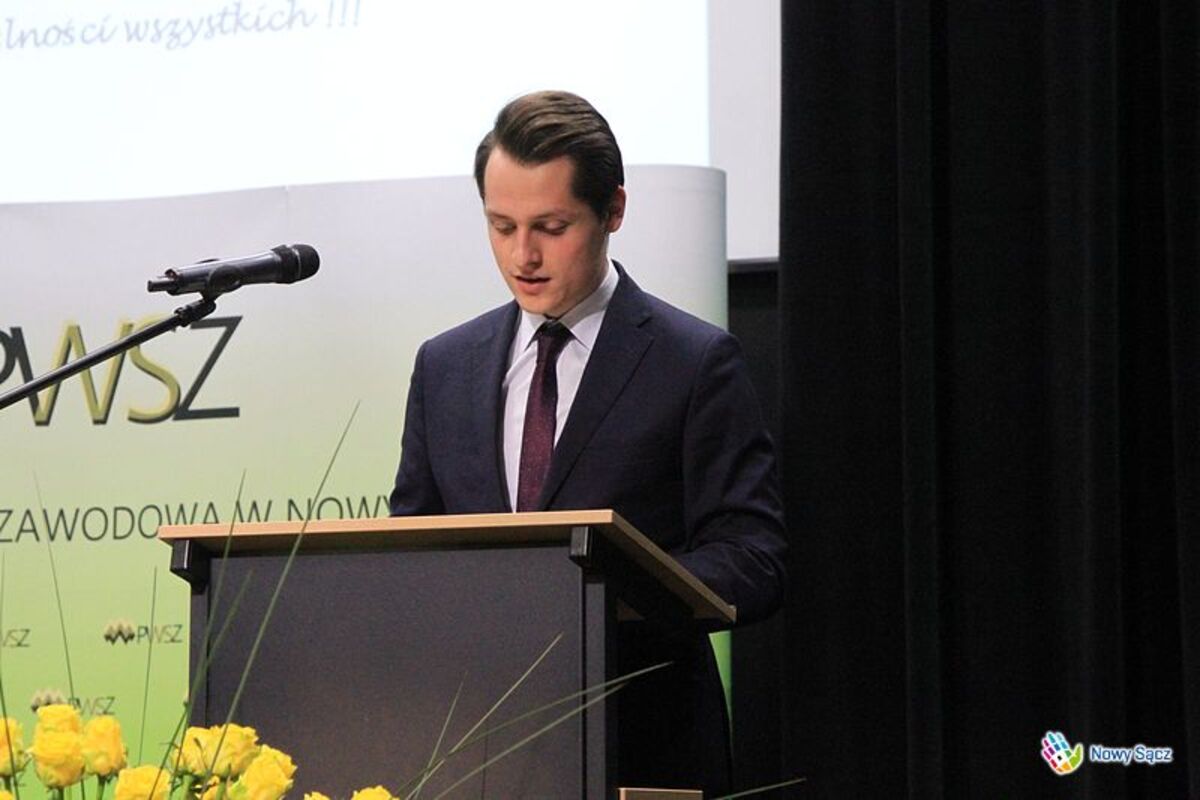 Wojciech Piech zwracając się do nauczycieli akademickich i studentów podkreślił niezwykle ważną rolę, jaką Państwowa Wyższa Szkoła Zawodowa w Nowym Sączu pełni w mieście i w regionie. - Obecność Państwowej Szkoły Zawodowej już od 20 lat tutaj, w Nowym Sączu, poświadcza szczególny status tego miasta jako stolicy subregionu, umacnia potencjał miasta w wielu obszarach. Tę aktywność PWSZ dostrzegamy na wielu polach: rozwoju strategicznego, gospodarczego, rynku pracy, przedsiębiorczości, w sektorze organizacji III wieku i nawet w sektorze sportu – podkreślił Wojciech Piech.