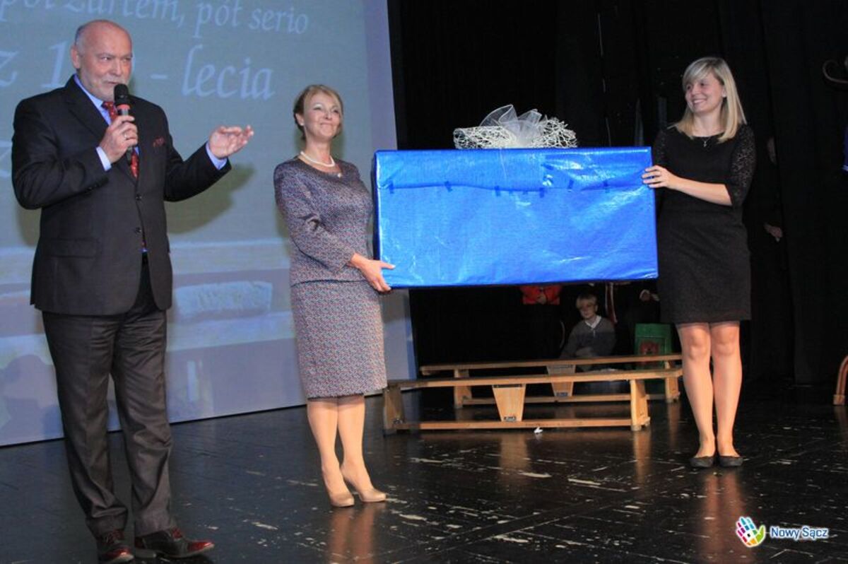 - To jest ważna szkoła, która jest trzecią jeśli chodzi o staż w Nowym Sączu. Ma swoje osiągnięcia i zasługi, dlatego wszystkim, którzy ją przez te wszystkie lata tworzyli, a więc nauczycielom, uczniom, rodzicom serdecznie dziękuję. Bo to jest miejsce, które wpisało się w Nowym Sącz i jego 725-letnią historię również. Ale też trzeba wiedzieć, że prawdziwa szkoła, to warsztat pracy uczniów i nauczycieli, gdzie wykuwa się i wkuwa wiedzę i dobre wychowanie. Tutaj to rzeczywiście widać. Szkoła to powinno być miejsce najlepszej zabawy. I to dzisiaj pokazano, gdzie bawią się wspólnie uczniowie i nauczyciele, tworząc jedną wielką rodzinę - powiedział Jerzy Gwiżdż gratulując dotychczasowej działalności i życząc wielu kolejnych sukcesów edukacyjnych i wychowawczych.