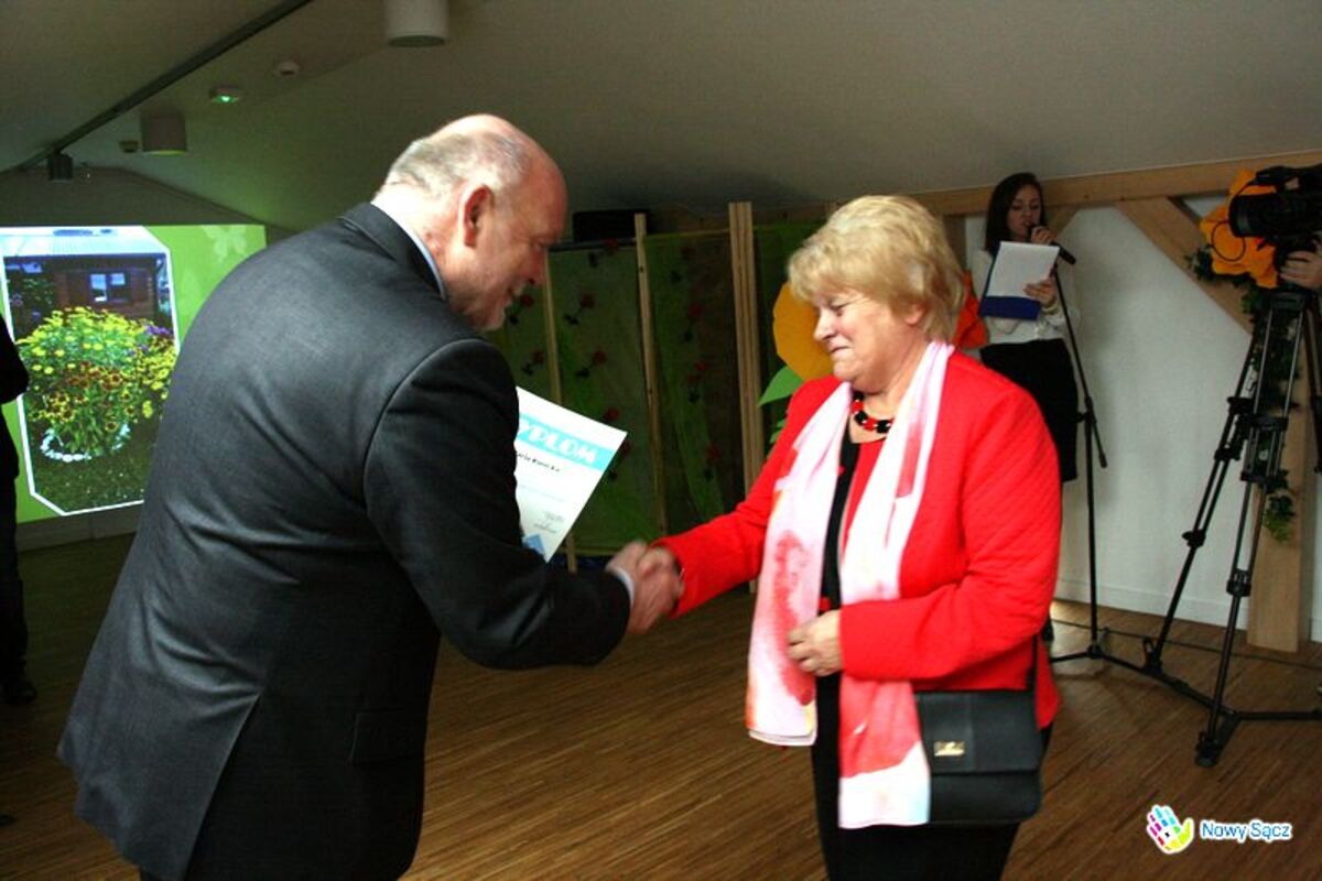 I nagrodę w kategorii "ogrody przydomowe" otrzymali państwo Joanna i Leszek Cempowie z osiedla Piątkowa (na zdjęciu pani Joanna z córką i dyrektor Wydziału Gospodarki Komunalnej Dorotą Goławską). W kategorii "tereny zielone jednostek organizacyjnych" zwyciężyła Grota Matki Bożej przy ul. Tarnowskiej. Łącznie przyznano 33 nagrody i wyróżnienia (zob. listę nagrodzonych). O wrażenia artystyczne zadbał zespół Sądeczoki, działający przy nowosądeckim Pałacu Młodzieży.