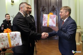 Przekazanie sprzętu miało miejsce w sali reprezentacyjnej sądeckiego ratusza. - Bardzo sobie cenimy jako społeczność lokalna to, co państwo – straż pożarna i jej ochotnicze formacje - robicie dla naszego bezpieczeństwa i chyba nigdy nie znajdziemy sposobu i prawdziwej formy, żeby w pełni za to podziękować – powiedział Wojciech Piech do druhów.