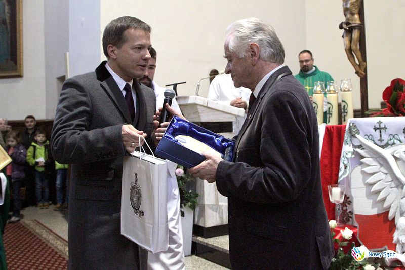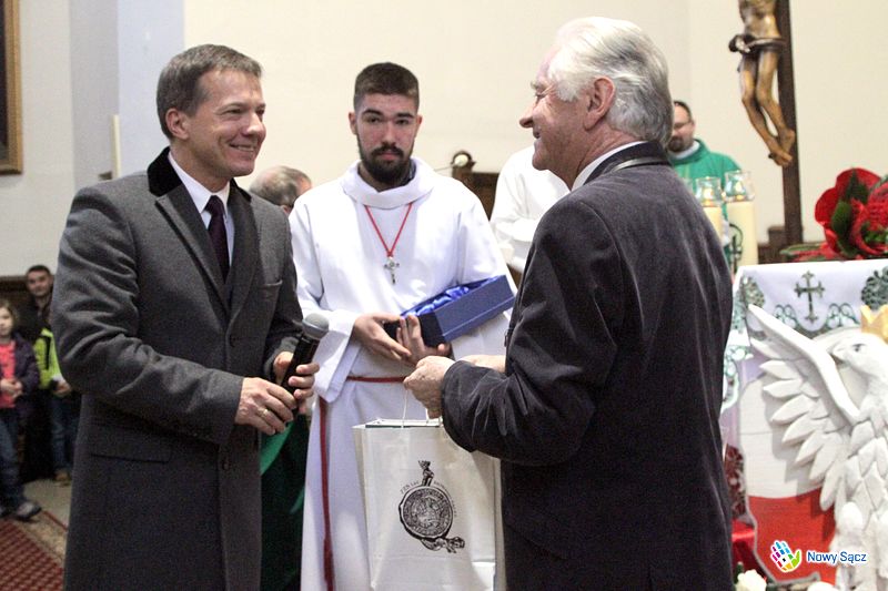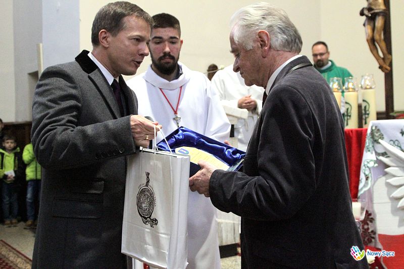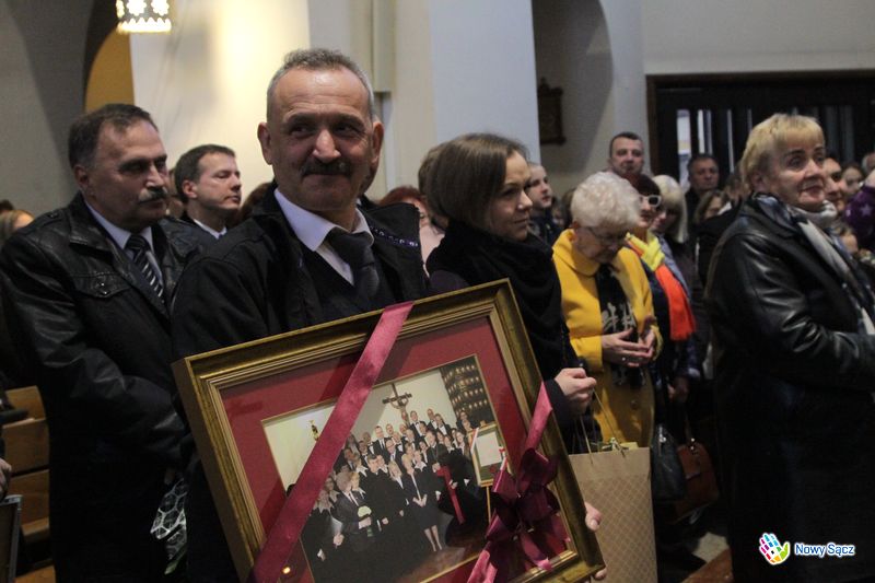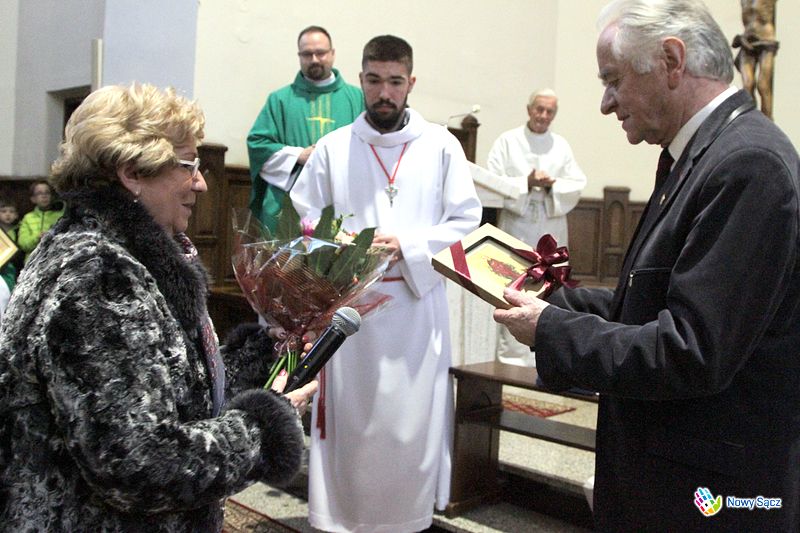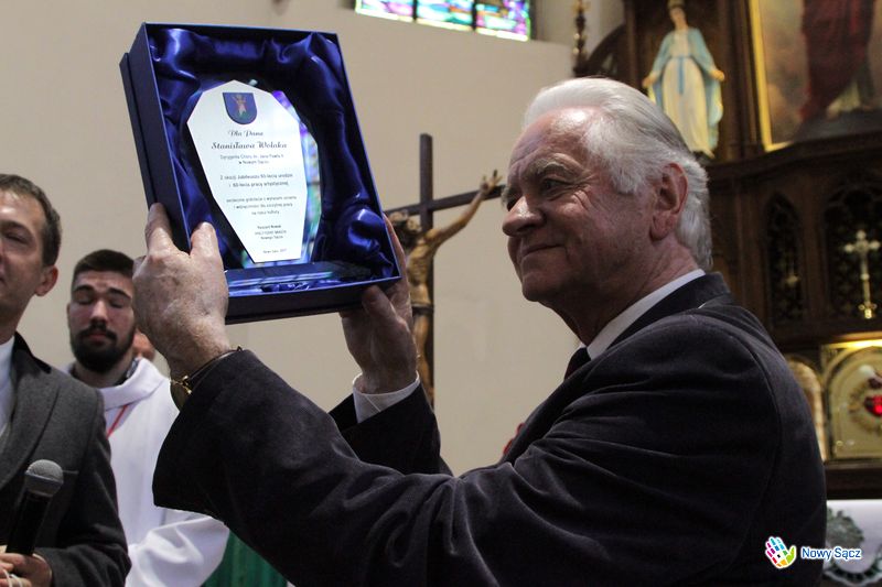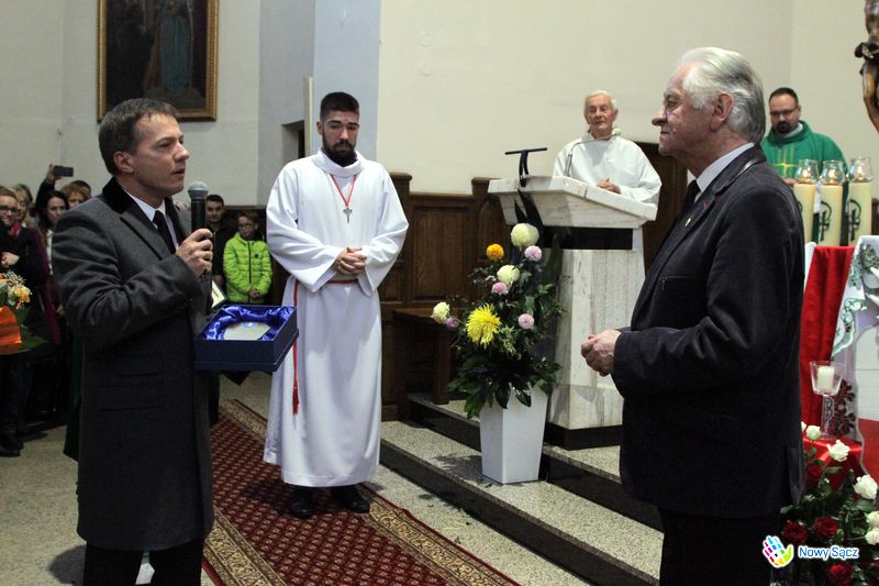 Stanisław Wolak podczas nabożeństwa nie opuścił swojego posterunku i tradycyjnie poprowadził działający przy kościele kolejowym chór im. Jana Pawła II. Wywołany przed ołtarz, poza życzeniami i gratulacjami otrzymał wiele symbolicznych podarunków. Wśród nich znalazły się dowody pamięci i uznania od władz miasta Nowego Sącza, wręczone przez zastępcę prezydenta Wojciecha Piecha i przewodniczącą Bożenę Jawor.