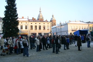 Przed godziną 20 na scenę pod ratuszem wniesiono wielki tort. Nie zmarnował się ani okruszek, ale dla wszystkich, którzy przybyli na Rynek, niestety, nie starczyło.