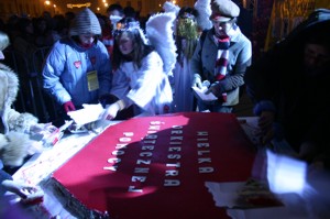 Punktualnie o godz. 20 zgasły światła na rynku, a do nieba wystrzeliło – dosłownie i w przenośni – światełko do nieba. Ogniowa kurtyna na ratuszu, sztuczne ognie, ogniki zimnych ogni, płomyki zapalniczek były znakiem połączenia się sądeczan ze wszystkimi, którzy włączyli się w akcję Orkiestry na rzecz dzieci.