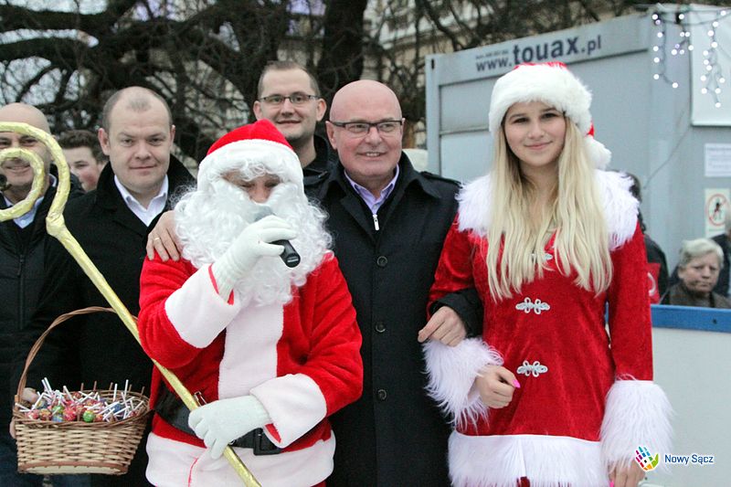 Prezydent Nowego Sącza Ryszard Nowak i Święty Mikołaj w towarzystwie Mikołajki powitał pierwszych łyżwiarzy na otwartym dziś (6 grudnia) lodowisku na sądeckim rynku. Zgodnie z zapowiedzią w Mikołajki otworzyła swoje podwoje jedna z zimowych atrakcji naszego miasta.