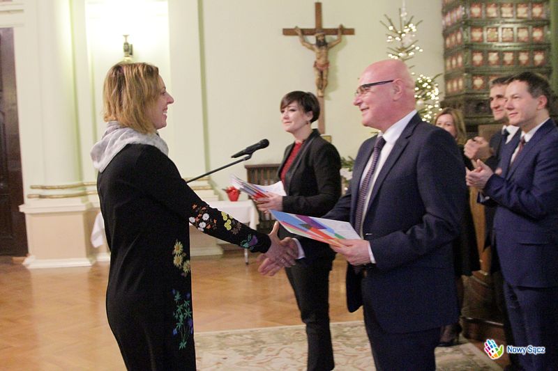 Symboliczne prezenty wręczyli także prezydentowi Ryszardowi Nowakowi i jego zastępcom pracownicy. W świąteczny nastrój wprowadził zebranych swoimi sądeckimi kolędami i pastorałkami Tomasz Wolak.