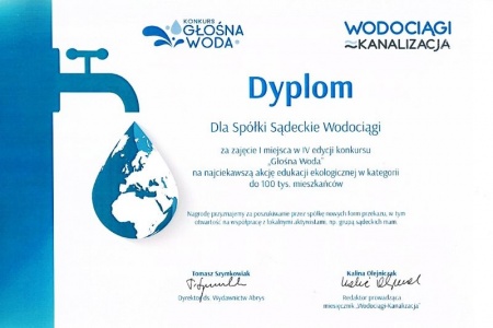 Za te wszystkie różnorodne działania Spółka Sądeckie Wodociągi została wyróżniona w skali całego kraju przez miesięcznik "Wodociągi-Kanalizacja". /Źródło: Sądeckie Wodociągi/.