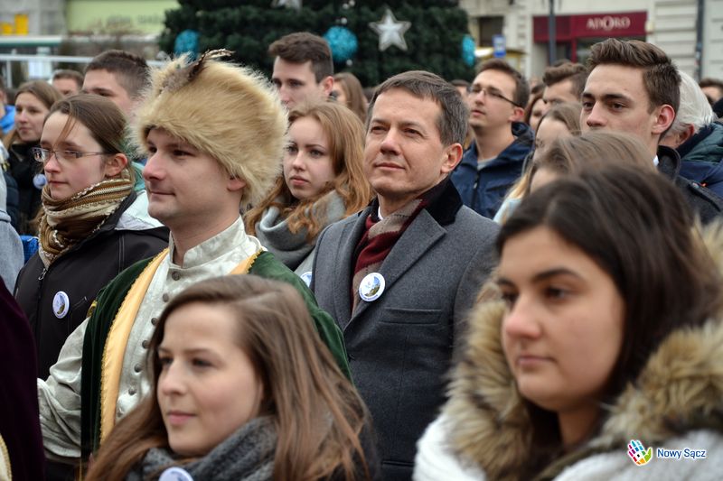 Życzenia zdania matury i udanego startu w dorosłe życie złożył uczestnikom poloneza również przewodniczący Rady Miasta Janusz Kwiatkowski. Wspomniał, że uczy w swojej szkole poloneza już 35 lat. - Taniec narodowy jest naszą chlubą i wspaniale go odtańczyliście. Chciałbym życzyć wam osiągnięcia celów, które zamierzyliście, a te cele sądeczanie zawsze wysoko stawiają. Myślę, że w stu procentach dostaniecie się na studia, które sobie wymarzyliście i wracajcie do Nowego Sącza. Tu są warunki, żeby wspaniale się rozwijać – podkreślił przewodniczący.