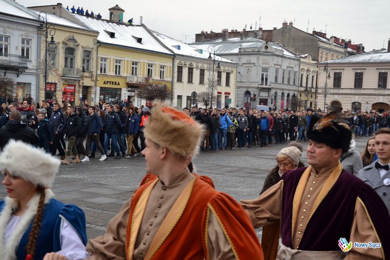 Na sto dni przed maturą uczniowie 12 sądeckich szkół odtańczyli poloneza przed ratuszem (24 stycznia). To tradycyjny dobry omen przed egzaminem dojrzałości. W tanecznym korowodzie udział wzięli zastępca prezydenta Nowego Sącza Wojciech Piech i przewodniczący Rady Miasta Janusz Kwiatkowski.