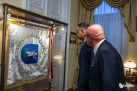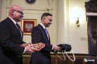 Prezydent Duda wchodząc do ratusza, złożył kwiaty pod tablicą poświęconą świętej pamięci profesorowi Lechowi Kaczyńskiemu oraz świętej pamięci Ryszardowi Kaczorowskiemu.