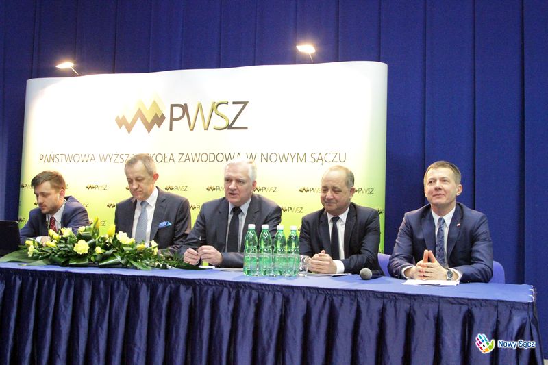 Wicepremier wręczył rektorowi Państwowej Wyższej Szkoły Zawodowej w Nowym Sączu, drowi hab. Mariuszowi Cygnarowi, czek w wysokości ponad 3,8 mln złotych na rozwój uczelni. Symboliczne czeki otrzymali także rektorzy wyższych uczelni zawodowych w Oświęcimiu, Tarnowie i Nowym Targu.