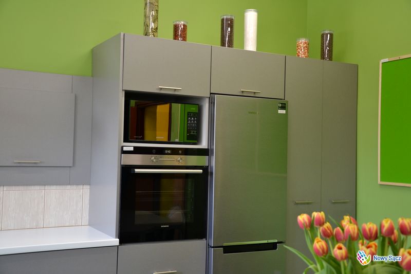 Nowa pracownia to kuchnia. Znajduje się w niej sprzęt, z którego większość ludzi korzysta każdego dnia: lodówka, kuchenka, piekarnik, kuchenka mikrofalowa, zastawa stołowa. Uczniowie będą w niej sami przygotowywać posiłki dla siebie.