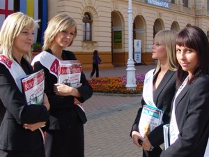 Równie mocnym akcentem sądeckim są piękne studentki z WSB-NLU i PWSZ występujące w rolach hostess wielkich korporacji (Orlenu, banków itp.).