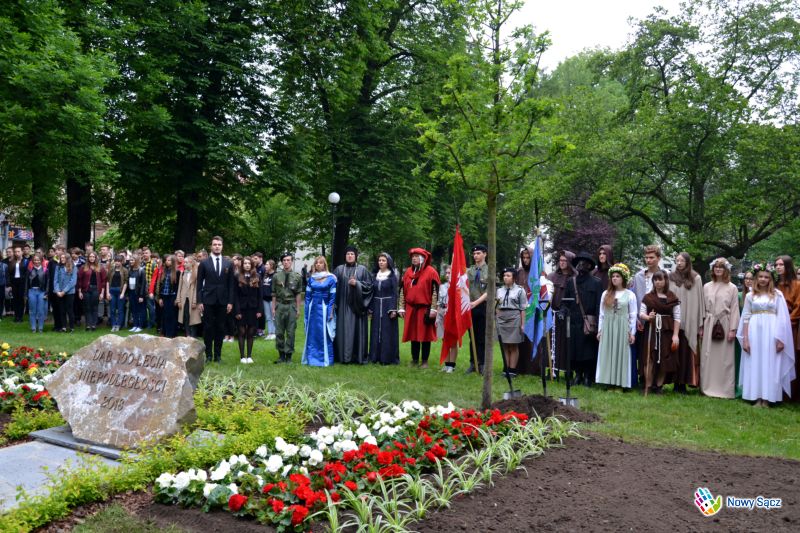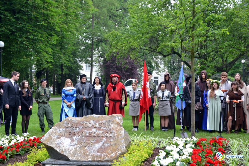 Dąb Niepodległości symbolicznie zasadzili: Prezydent Miasta Nowego Sącza Ryszard Nowak, dyrektor I Gimnazjum i Liceum Ogólnokształcącego imienia Jana Długosza w Nowym Sączu Aleksander Rybski oraz uczniowie I LO: przewodnicząca samorządu szkolnego Julia Wańczyk, zastępca przewodniczącej Dawid Kubas i przedstawiciel harcerskiej drużyn Czarna Jedynka Radosław Janik.