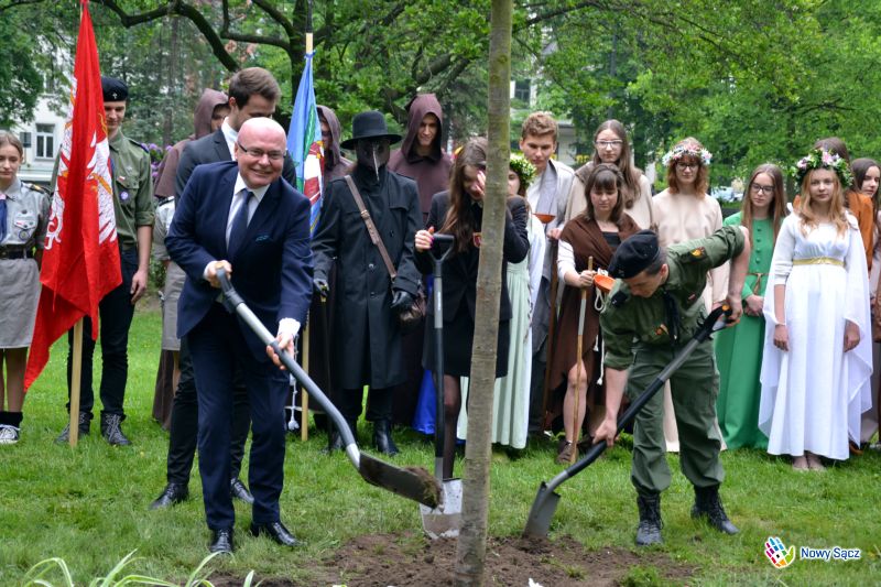 - To wyjątkowa chwila. Sto lat temu nasi przodkowie posadzili Dąb Wolności, a my dzisiaj mamy okazję posadzić Dąb Niepodległości – to młodszy brat Dębu Wolności – mówił Prezydent Miasta Nowego Sącza Ryszard Nowak. - Mam nadzieję, że ta chwila przejdzie do historii miasta i historii I Liceum Ogólnokształcącego, że będziecie z tego dumni wy, jak i przyszłe pokolenia uczniów. Przekazujemy wam pod opiekę ten dąb i wierzę, że będziecie o niego dbać i troszczyć się. Proszę pamiętać, że to drzewo przekazane przez Prezydenta Andrzeja Dudę, jest także darem miasta Nowego Sącza i jego mieszkańców.