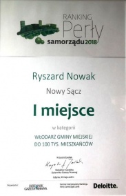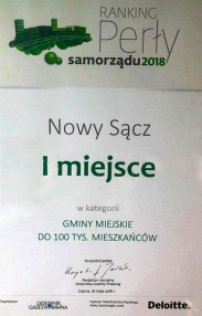 Niekwestionowanym liderem rankingu w kategorii gmin miejskich do 100 tysięcy mieszkańców zostało Miasto Nowy Sącz, zdobywając I miejsce. Perła Samorządu trafiła do Prezydenta Miasta Nowego Sącza Ryszarda Nowaka, który został najlepszym włodarzem.