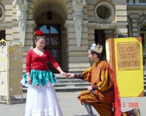 Dwukrotnie w czasie tych dni sądecka książnica wyszła do swoich czytelników poza mury budynku przy ul. Franciszkańskiej i przed sądeckim Ratuszem mogliśmy obejrzeć scenki z najbardziej znanych bajek.