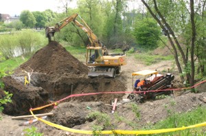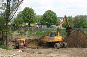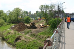 Obecnie trwają prace przy przekładaniu sieci (m. in. gazowej, energetycznej, teletechnicznej), która zostanie umieszczona w specjalnie wydrążonym tunelu pod korytem rzeki. Dla pieszych zostanie wybudowana kładka, która jesienią zostanie rozebrana.