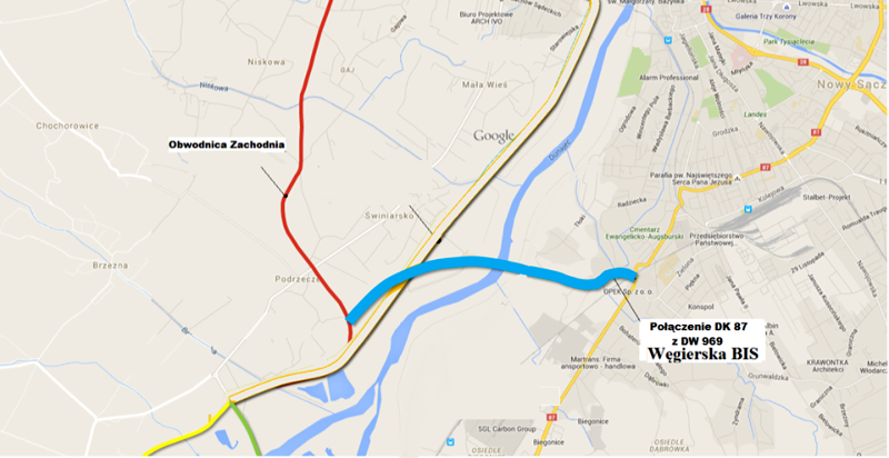 Rozstrzygnięty został przetarg na wielowariantową koncepcję budowy połączenia drogi krajowej nr 87 z drogą wojewódzką nr 969 w Nowym Sączu. Dokładny przebieg 3-kilometrowej trasy, która połączy drogę krajową nr 87 z obwodnicą Podegrodzia oraz miejscem budowy 700-metrowego mostu na rzece Dunajec, ma być znany już w przyszłym roku. Koszt opracowania koncepcji trzeciego mostu na Dunajcu to kwota blisko 800 tys. zł, zaś budowa samego mostu – 60 mln zł.