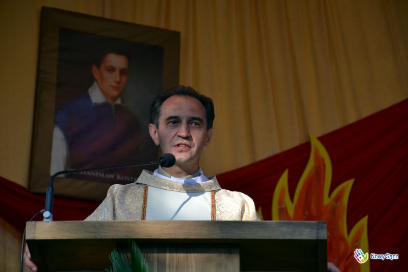 Mszy świętej w intencji Ojczyzny przewodniczył ksiądz dr Paweł Nowogórski - dyrektor Centrum Edukacji Młodzieży imienia księdza Jerzego Popiełuszki w Górsku koło Torunia, który podkreślał w swoim kazania, że relikwie, które trafiły do Nowego Sącza, są relikwiami pierwszego stopnia.