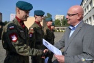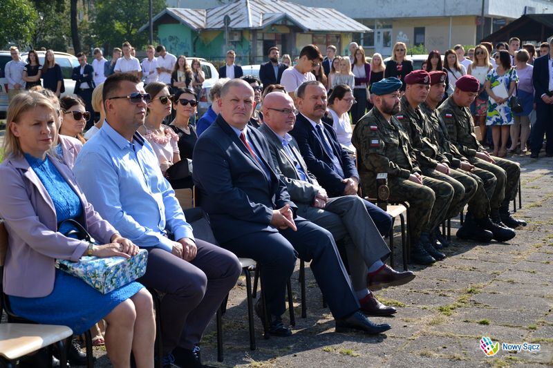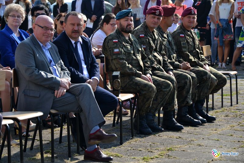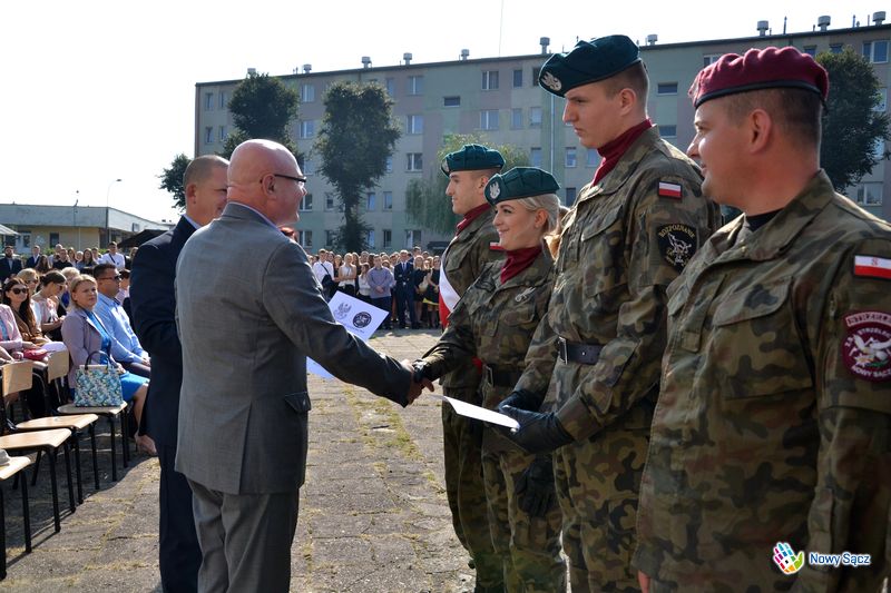 - Jestem przekonany, że rozpoczynając swoją dyrektorską karierę, będzie pan w sposób właściwy, godny i pełen oddania dbał o szkołę i efekty nauczania – mówił prezydent miasta Ryszard Nowak do dyrektora szkoły, a następnie zwrócił się do uczniów klas mundurowych, zrzeszonych w Związku Strzeleckim „Strzelec”: - Jesteście wizytówką miasta i jesteście znani nie tylko w Nowym Sączu, ale także w Polsce. Chcę powiedzieć, że kiedy zaczynaliśmy współpracę z obecnym dyrektorem dwanaście lat temu, ta formacja wyglądała zupełnie inaczej. Dzisiaj jestem dumny z tego, że właśnie w ten sposób reprezentujecie szkołę, nasze miasto. Hołdujecie tradycjom, jak również wartościom, które wszystkim sądeczanom są bardzo bliskie. Życzę wam znakomitych efektów, satysfakcji z tego, że jesteście „Strzelcami”, że jesteście uczniami tej szkoły i na dowód tego, że doceniam waszą pracę, wasze zaangażowanie, chcę wręczyć na ręce pana dyrektora Złoty Dukat Sędziwoja – to jest najwyższe wyróżnienie prezydenta miasta. Wierzę, że będzie to jakiś element mobilizujący, by jeszcze więcej z siebie dać i jeszcze więcej osiągnąć.