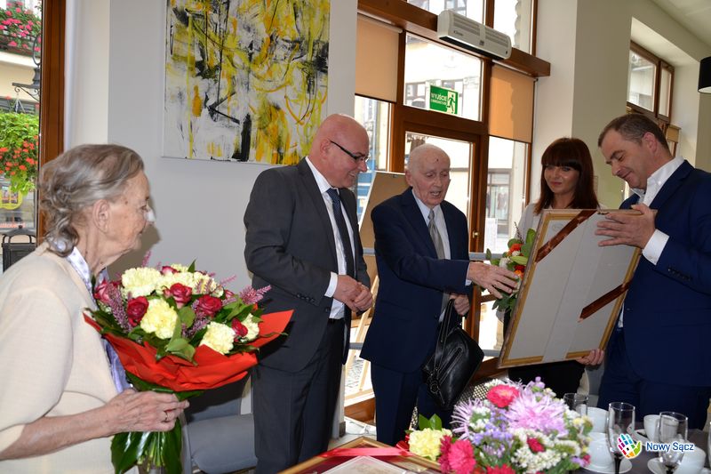 Państwo Wiktoria i Wiesław Skwarkowie obchodzą jubileusz 65-lecia małżeństwa, zwany zwyczajowo "żelaznymi godami". Z tej okazji Prezydent Miasta Nowego Sącza Ryszard Nowak zaprosił małżonków na uroczyste spotkanie, które odbyło się w Centrum Sądeckiego Seniora.