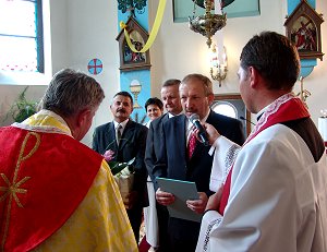 Proboszcz podziękował władzom Nowego Sącza za owocną współpracę na rzecz Biegonic, m.in. przy budowie nowej kaplicy cmentarnej.