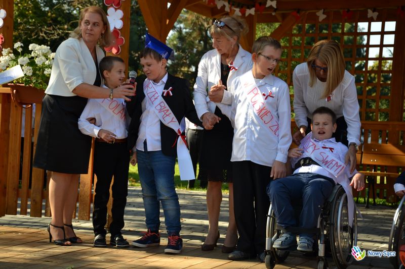 Następna część uroczystości odbyła się na placu przed Specjalnym Ośrodkiem Szkolno-Wychowawczym przy ulicy Broniewskiego, gdzie uczniowie pierwszej klasy złożyli ślubowanie na sztandar szkoły, a podopieczni ośrodka wraz z wychowawcami przygotowali występ artystyczny.