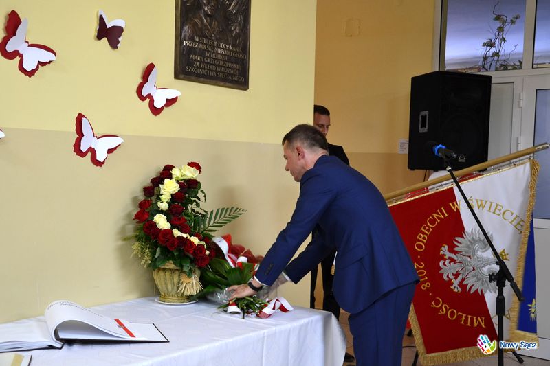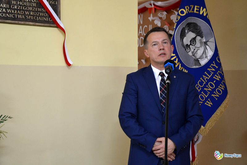 Wewnątrz budynku odsłonięta została tablica, poświęcona patronce SOSW Marii Grzegorzewskiej. Podczas odsłaniania jej zastępca prezydenta Nowego Sącza Wojciech Piech zwrócił się do podopiecznych ośrodka oraz ich wychowawców: