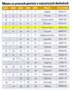Nowy Sącz w tych rankingach, w kategorii miast na prawach powiatu, uplasował się na wysokim, piątym miejscu, awansując - w porównaniu z ubiegłorocznym zestawieniem - o pięć pozycji. Było to możliwe głównie dzięki środkom pozyskanym przez miasto z UE na dużą inwestycję porządkującą gospodarkę wodno-ściekową.