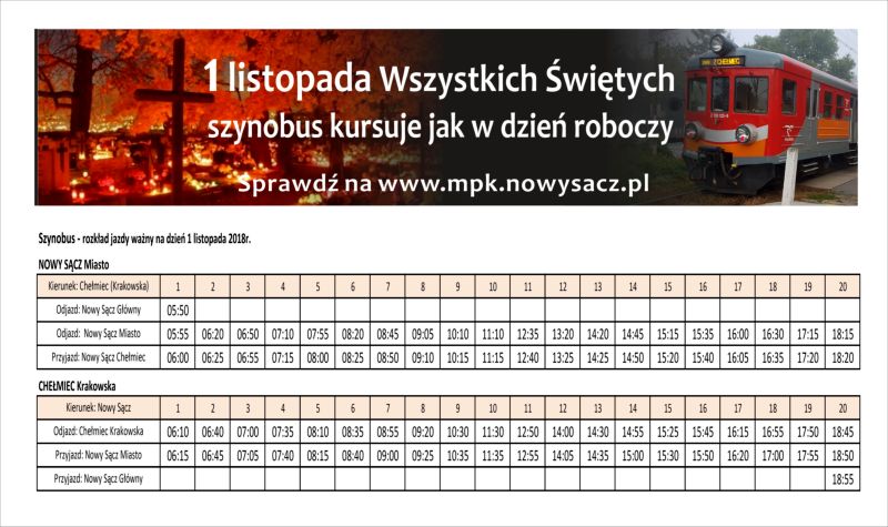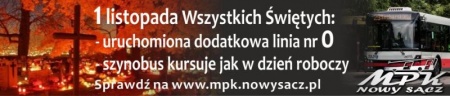 Miejskie Przedsiębiorstwo Komunikacyjne Sp. z o.o. w Nowym Sączu informuje, że w dniu 1 Listopada 2018 r. (Wszystkich Świętych) zostanie uruchomiona linia „0”, która połączy sądeckie cmentarze. W tym roku linia zostanie wydłużona do osiedla Wólki.