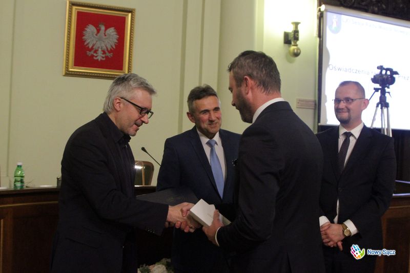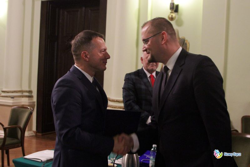Następnie wraz z członkami Prezydium Rady, wiceprzewodniczącymi Michałem Kądziołką, Tomaszem Cisoniem oraz Piotrem Lachowiczem, złożył podziękowania na ręce prezydenta miasta Nowego Sącza Ryszarda Nowaka.