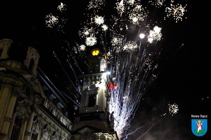 Zaraz potem zegar na wieży ratuszowej wybił północ i sądeczanie przywitali Nowy Rok. Efektowny pokaz sztucznych ogni odbył się przy dźwiękach muzyki, m.in. tradycyjnego polskiego poloneza.