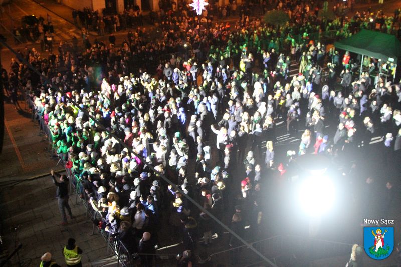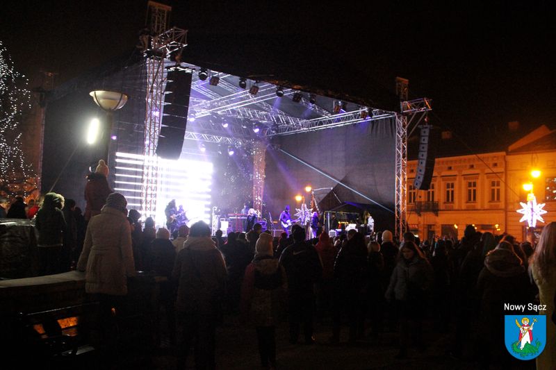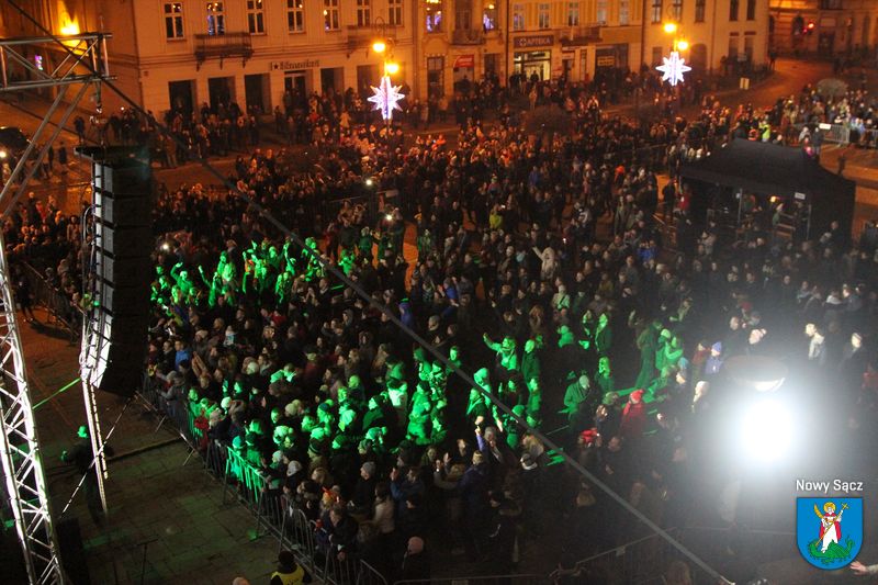 Sądeczanie bawili się już od godziny 22.30. Zabawa sylwestrowa, którą poprowadził Janusz Michalik z Miejskiego Ośrodka Kultury w Nowym Sączu, rozpoczęła się od koncertu zespołu Ble - Ble. Po nim wystąpił młody sądecki muzyk Janek Stosur. Najbardziej wyczekiwano jednak występu Urszuli, która zaśpiewała swoje największe przeboje, m.in. „Malinowy król”, „Konik na biegunach”, „Na sen”, czy „Totalna hipnoza”. Wraz z piosenkarką, obecną na polskiej scenie muzycznej już od 35 lat, utwory nuciła licznie zgromadzona sądecka publiczność.