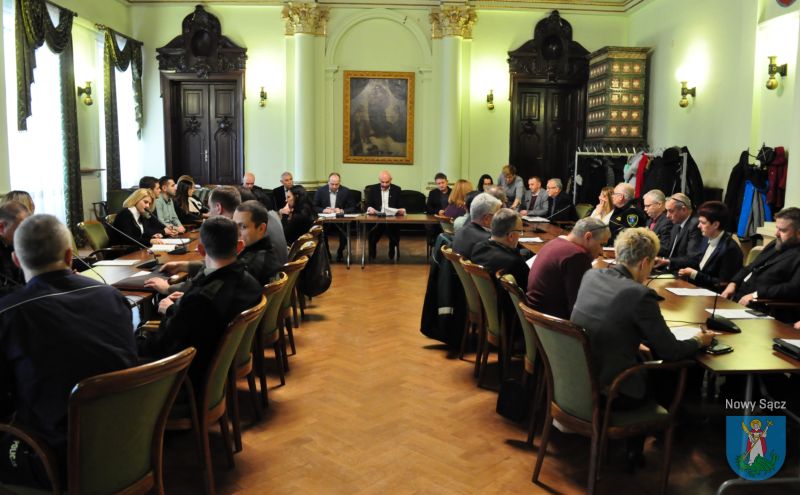 Dzisiaj (10 stycznia) w sali reprezentacyjnej nowosądeckiego ratusza odbyło się posiedzenie członków Miejskiego Zespołu Zarządzania Kryzysowego. Zgromadzonych na spotkaniu powitał zastępca prezydenta miasta Nowego Sącza Artur Bochenek oraz p.o. dyrektora Wydziału Zarządzenia Kryzysowego Dawid Kudełka, po czym przedstawiono Plan Pracy w kontekście organizacji w naszym mieście akcji Bezpieczne Ferie 2019.