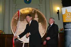 Dzisiaj w Sali Ratuszowej prezes Narodowego Banku Polskiego, przewodniczący Rady Polityki Pieniężnej, prof. Leszek Balcerowicz, wraz z prezydentem Józefem Antonim Wiktorem, dokonali symbolicznego odsłonięcia wprowadzonej do obiegu przez NBP monety 2-złotowej z wizerunkiem sądeckiego Ratusza.