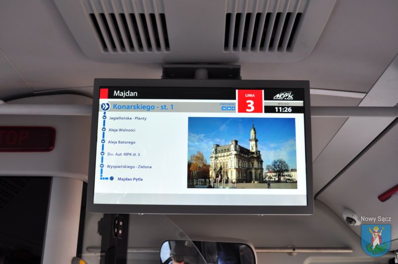 Ze względu na konieczność zapewnienia bezpieczeństwa kierującego i pasażerów zarówno wewnątrz jak i na zewnątrz pojazdu zamontowano kompleksowy monitoring z systemem rejestracji na twardym dysku. Ułatwi to Spółce dochodzenie swoich praw w przypadkach spornych, szczególnie tych wynikających z ryzykownych zachowań pieszych i innych kierujących. Dodatkowo pasażerowie będą mogli skorzystać z zamontowanych wewnątrz ładowarek USB.