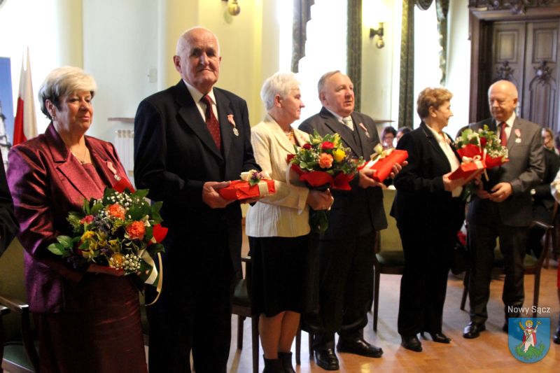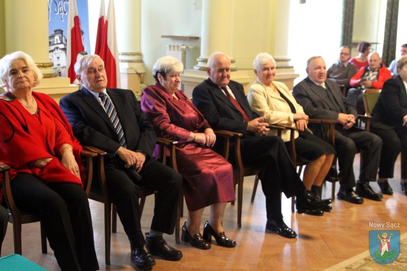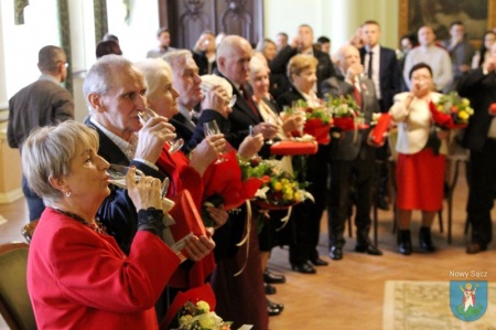 Prezydent Miasta Nowego Sącza Ludomir Handzel złożył gratulacje i życzenia kolejnych pięknych lat pożycia małżeńskiego oraz wszelkiej pomyślności trzynastu parom, świętującym swoje jubileusze Złotych Godów. Prezydent odznaczył również Jubilatów medalami za długoletnie pożycie małżeńskie, przyznanymi przez Prezydenta Rzeczpospolitej Polskiej Andrzeja Dudę.