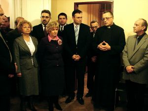 Pierwszą osobą składającą życzenia świąteczne był ojciec superior - Jacek Maciaszek, jezuita, proboszcz sądeckiej Parafii Ducha Świętego. Po błogosławieństwie opłatków, życzenia sądeczanom złożył także poseł Arkadiusz Mularczyk.