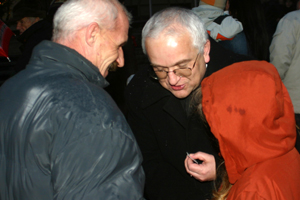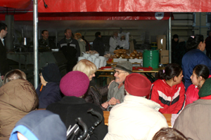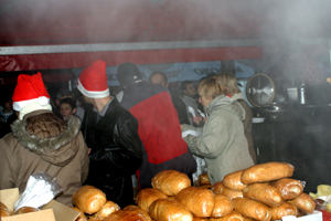 Było błogosławieństwo, świąteczne życzenia, łamanie się opłatkiem i gorący poczęstunek. Potrawy – kilkanaście tysięcy pierogów i kilkaset litrów zupy pieczarkowej oraz słodki poczęstunek przygotowali sądeccy restauratorzy i biznesmeni: Janina Damasiewicz, Jan Kożuch i Wincenty Żygadło, Halina i Jerzy Leszczyńscy.